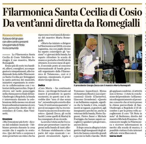 Filarmonica Santa Cecilia di Cosio: da vent'anni diretta da Romegialli